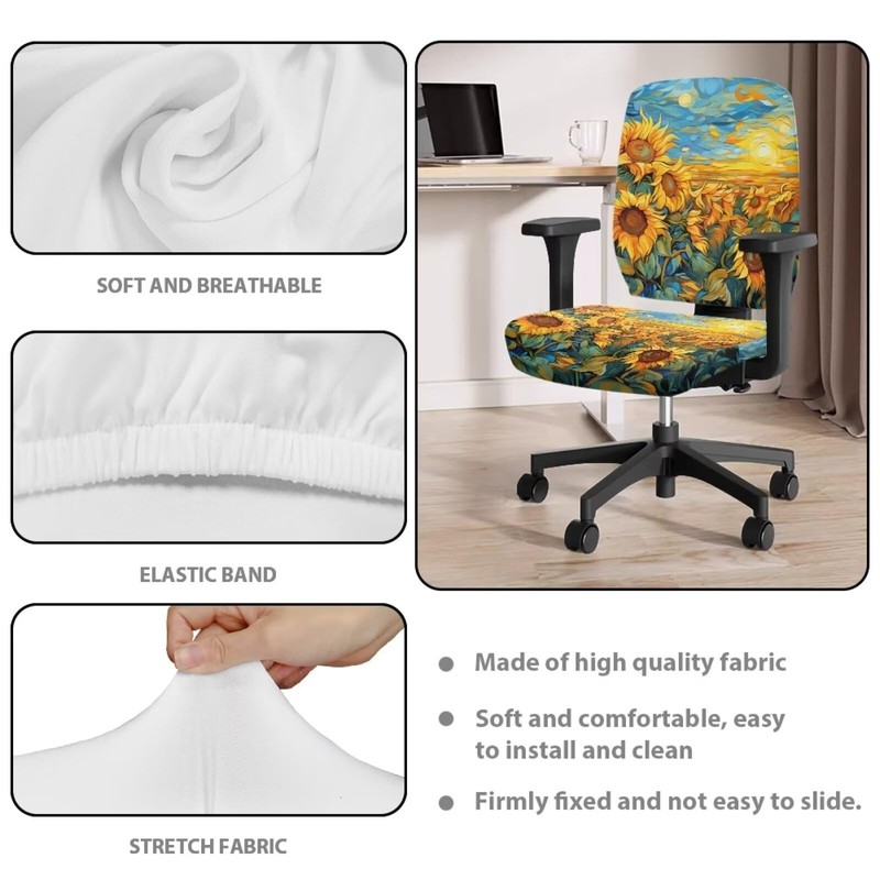 ELEDIZI Office Chair Cover Van Gogh Sunflower Desk Chair Cover 2 Piece Computer Chair Covers Stretchable Without Arms Breathable Rolling Chair Cover Slipcover Universal Chair Covers Polyester