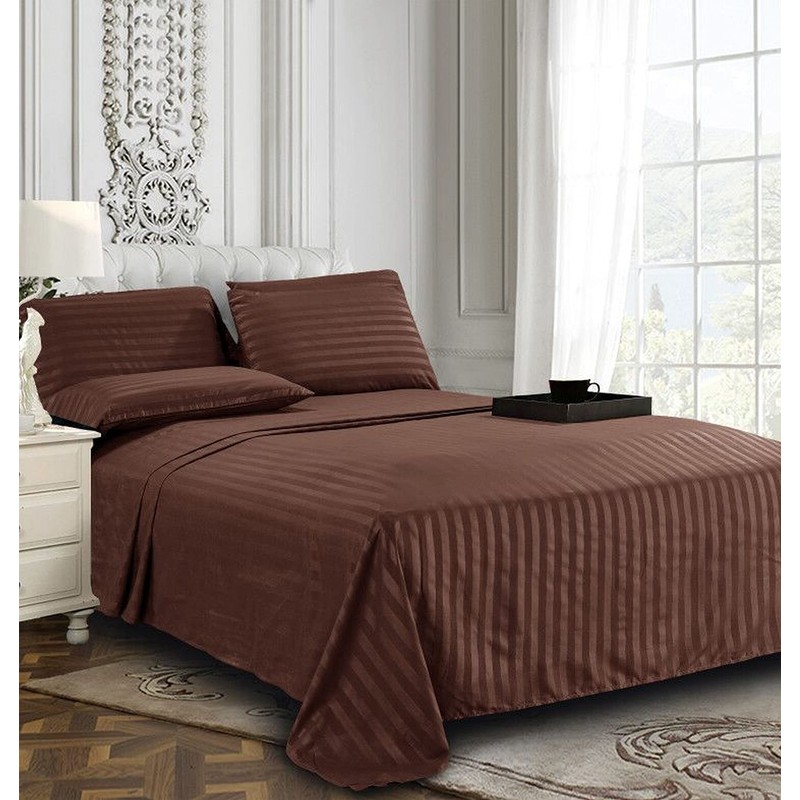 Elegant Comfort Best, Softest, Coziest 6-Piece Sheet Sets! - 1500 Premier Hotel Quality Luxurious Wrinkle Resistant 6-Piece Damask Stripe Bed Sheet Set, Full Chocolate Brown