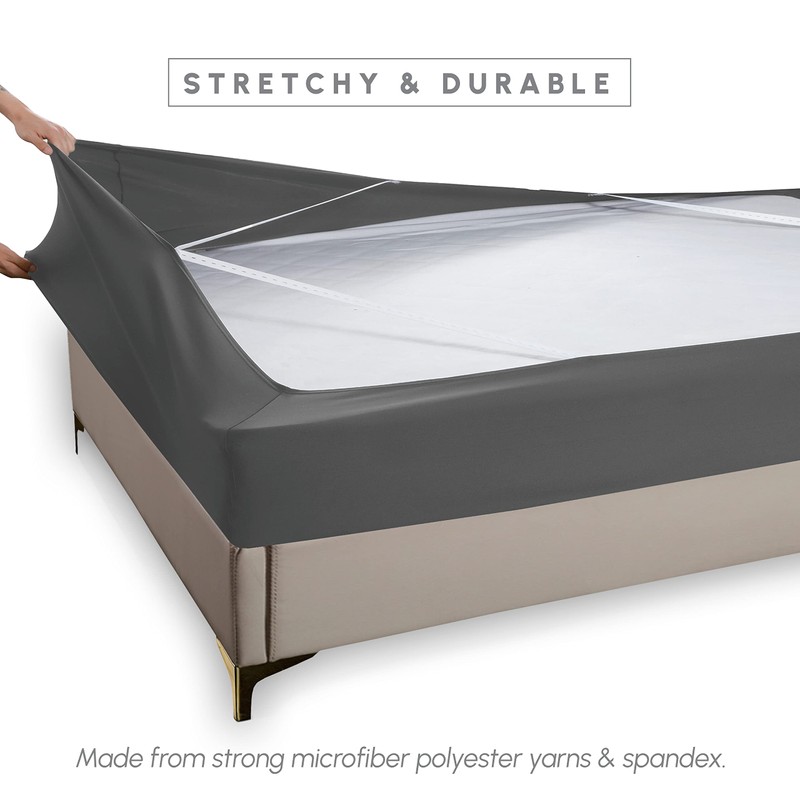 Elegant Comfort Box Spring Cover - Stretchy and Snug Fit Wrap Around 4 Sides Bed Skirt - Jersey Knit, Sleek Alternative for Bed Skirt, Soft and Smooth Fits Box Springs up to 12", King Gray