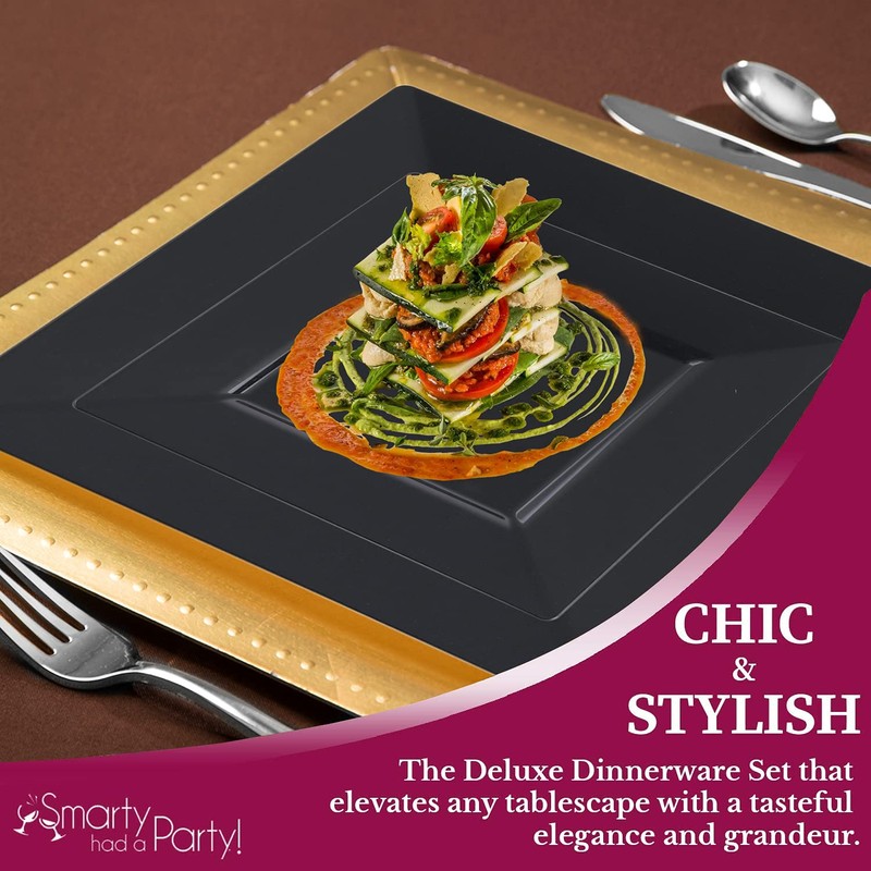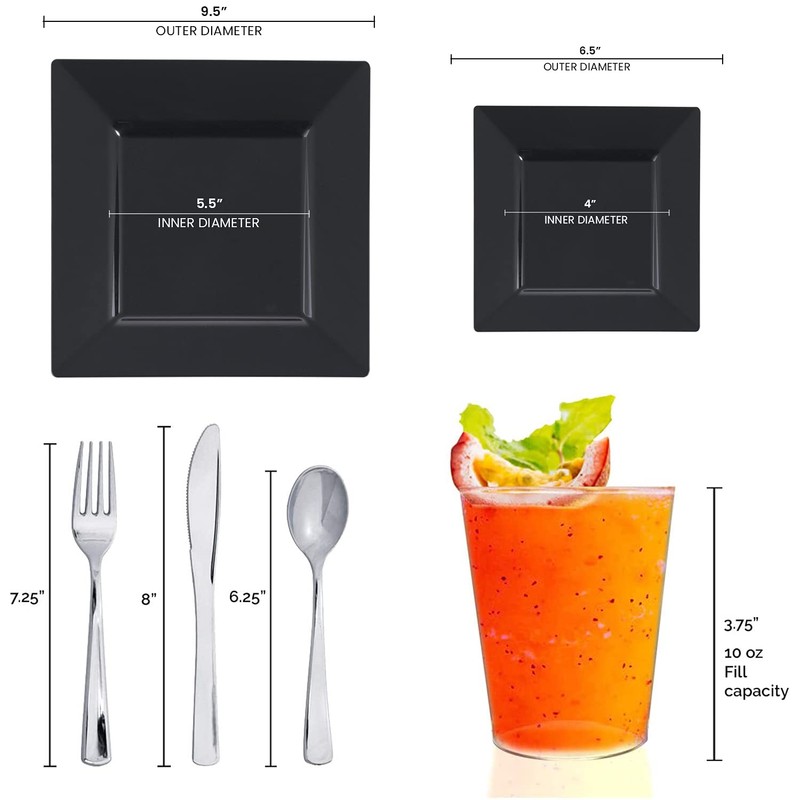 Elegant Disposable Plastic Dinnerware Set, Heavy Duty Plastic Plates (Black, Wedding Value Set (60 Guests))