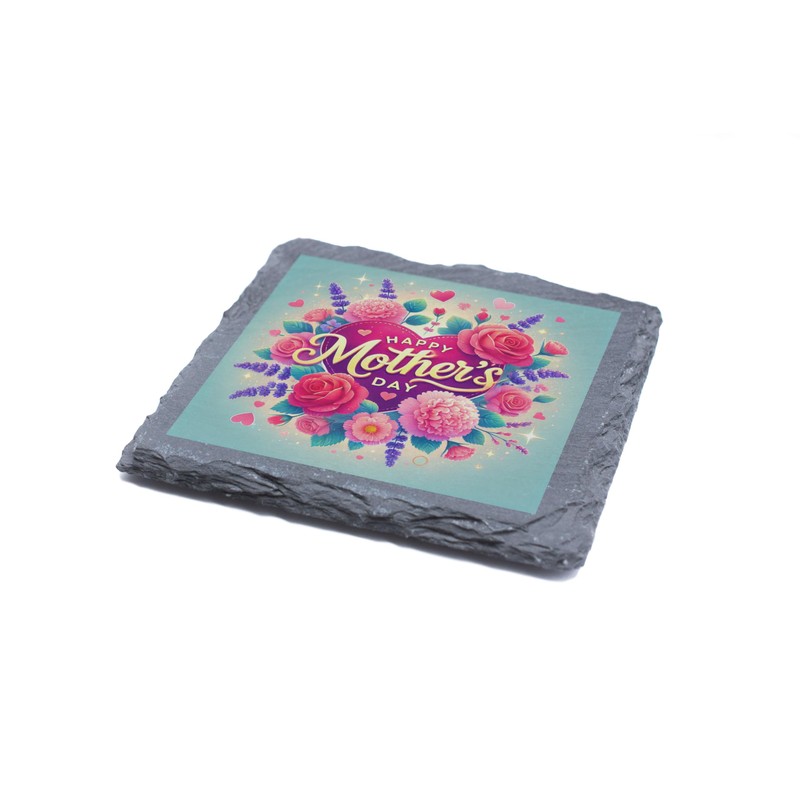 Elegant Floral Mother's Day Slate Coaster - Happy Mother's Day Keepsake Gift (slco-ds24-bluemdayrg)
