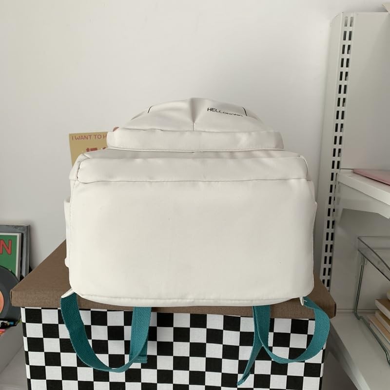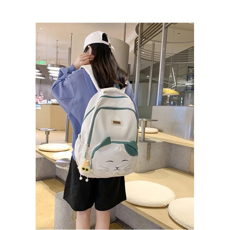 Elegant Panda Aesthetic Backpack for Teens and Adults. Cute Cat Face Daypack Large Big Capacity Backpack with Accessories. (White)