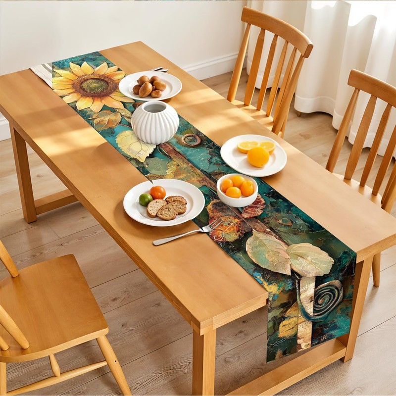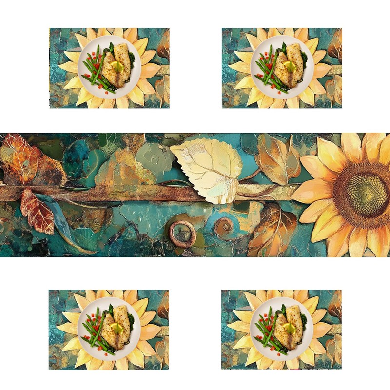 - Complete 5-Piece Set – Includes 1 sunflower-patterned table runner (13" x 72") and 4 matching placemats (13" x 18"), offering a coordinated and polished look for everyday meals or special occasions.