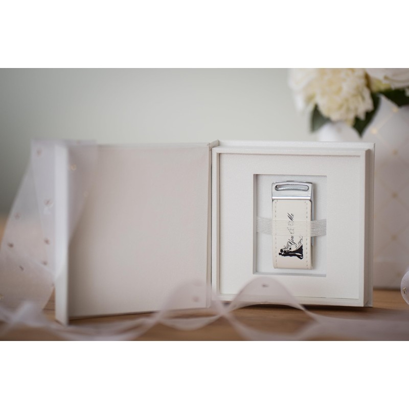 - An elegant, high-quality USB box with USB stick You&Me, perfect for carefully storing precious memories of your wedding. Thanks to the rubber holder, your USB will be safely inside your box.