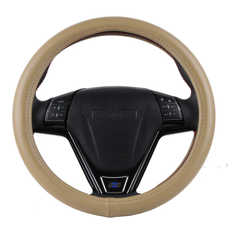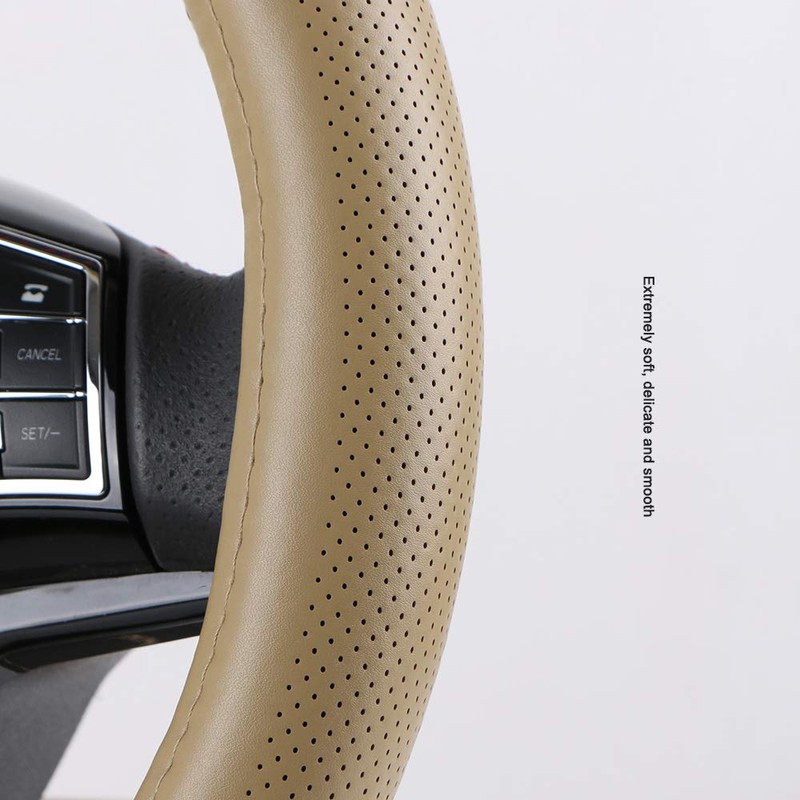 - La funda para volante de piel auténtica de color blanco roto es silenciosa y elegante en el coche.