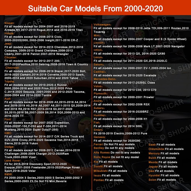 - Se adapta perfectamente al volante de coche estándar de 15 pulgadas (diámetro exterior de 14.9 a 15.1 pulgadas). No es adecuado para volante de camiones y autobuses.