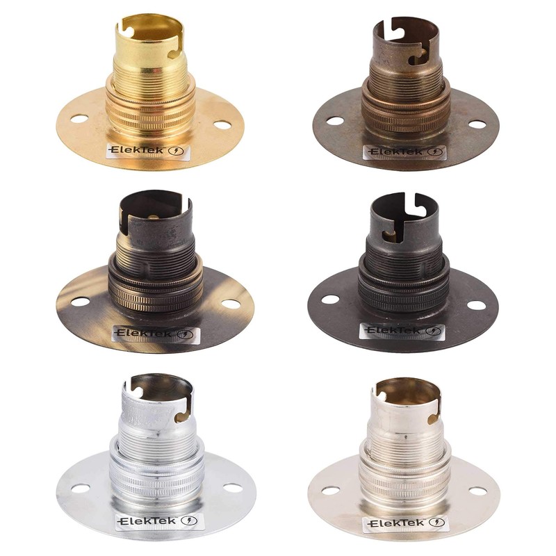 ElekTek Batten B22 BC Bayonet Cap Lamp Holder with Shade Ring 50mm/2” Centre ...