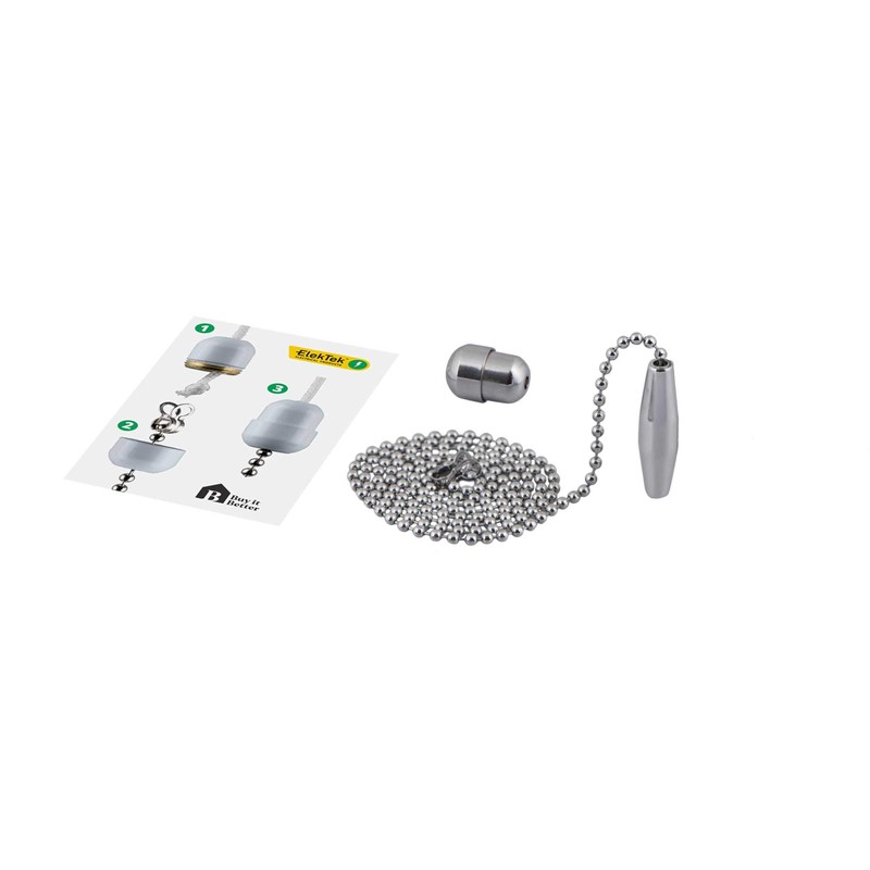 - A premium metal two-piece cord-connector is included with every ElekTek pull chain to enable easy attachment of the replacement metal ball chain to the existing switch cord - as pictured