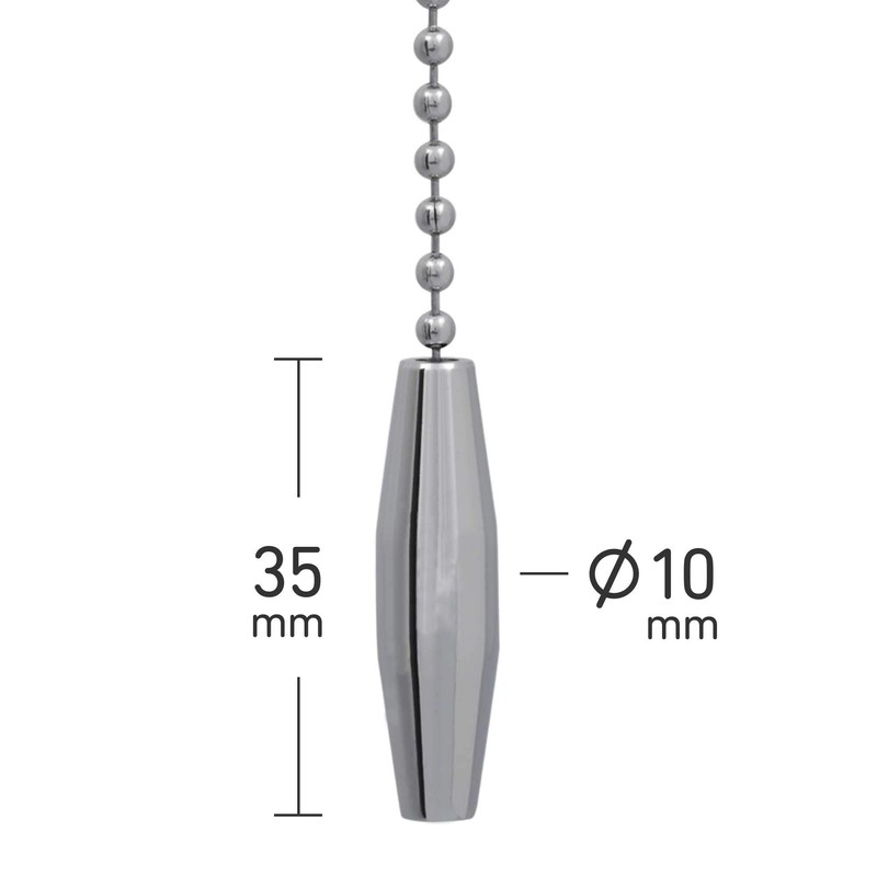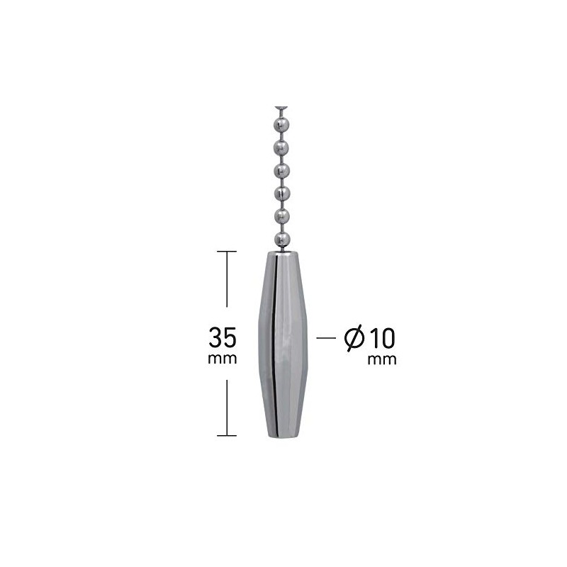 ElekTek Chrome Bathroom Light Pull Fob Chain Cord Double Taper 35x10mm with 80cm Matching Chain