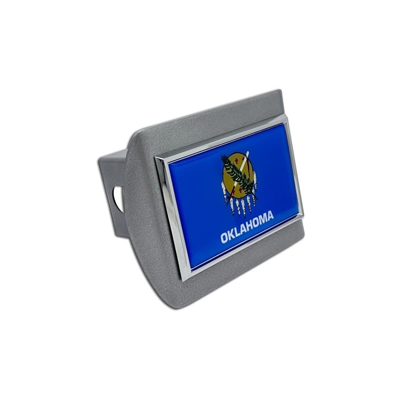 - Premium Materials: Brand New - Oklahoma State Flag All Metal Brushed Chrome Hitch Cover (5.0" x 3.5") with the highest plating specs on the market.
