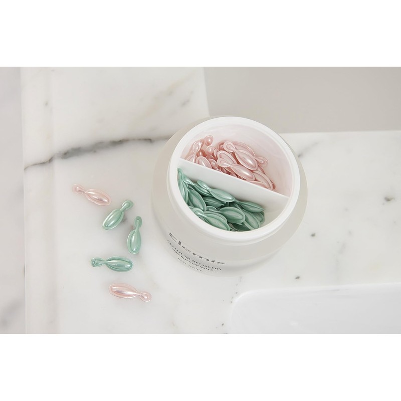 - Tragen Sie morgens den Inhalt der rosa Rosenkapsel und abends den der grünen Lavendelkapsel auf.