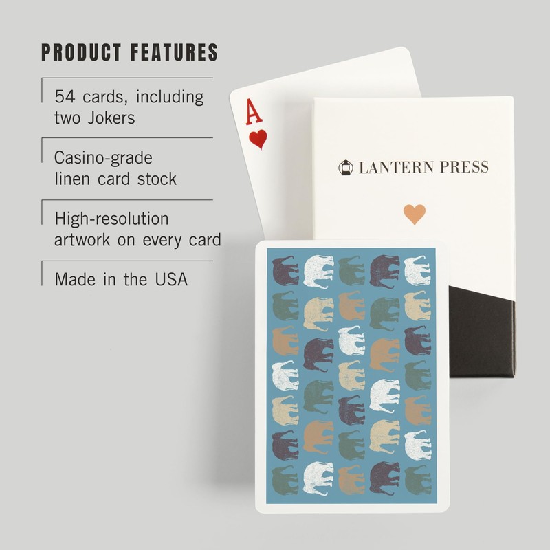 - Elephant, Pattern (52 Playing Cards, Poker Size Card Deck with Jokers), Made in the USA.