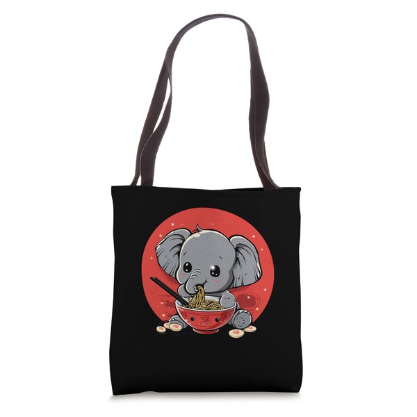 Elephant Ramen Bowl Japanese Noodles Kawaii Anime Artwork Tote Bag