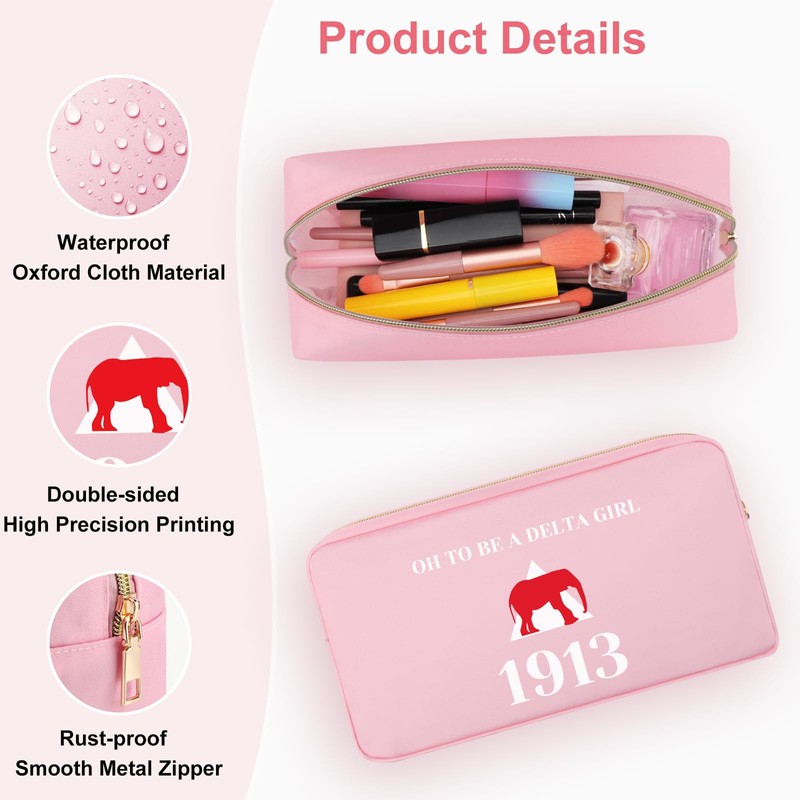 - Perfect Gifts for Women: Looking for gifts for her? Our Elephant 1913 Sorority travel makeup bag is the answer! No matter what the occasion, our pink makeup bag is a stylish companion. It makes the perfect festival gift for mom, daughter,teacher, friend, family, nurse,bridesmaid,girlfriend, wife,bestie, sister and co-worker.