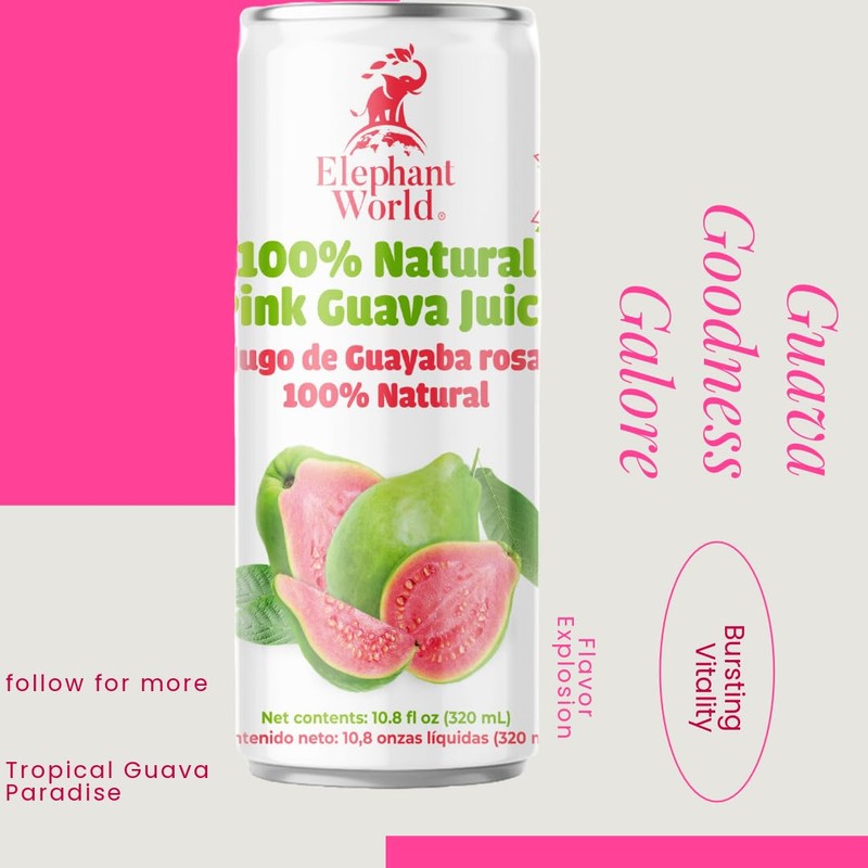Elephant World 100% Natural Pink Guava Guayaba Juice | NON GMO | 10.8 oz (Pac...