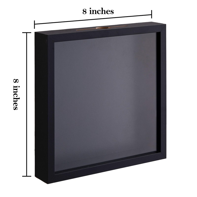 eletecpro 8x8 Inch Shadow Box with Real Glass Cover and Top Slot, Display Case Frame for Tickets, Flower, Pictures, Black