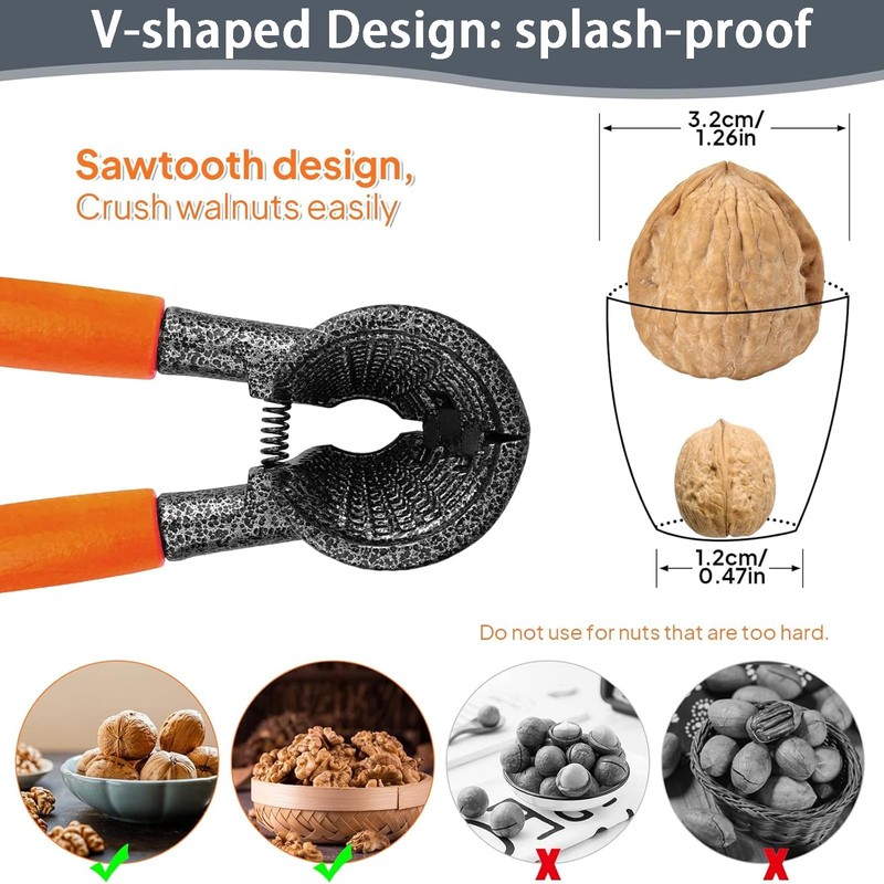 - Ergonomic design ensures a firm grip and prevents slipping during use, specially designed for harder shells such as walnuts and hazelnuts