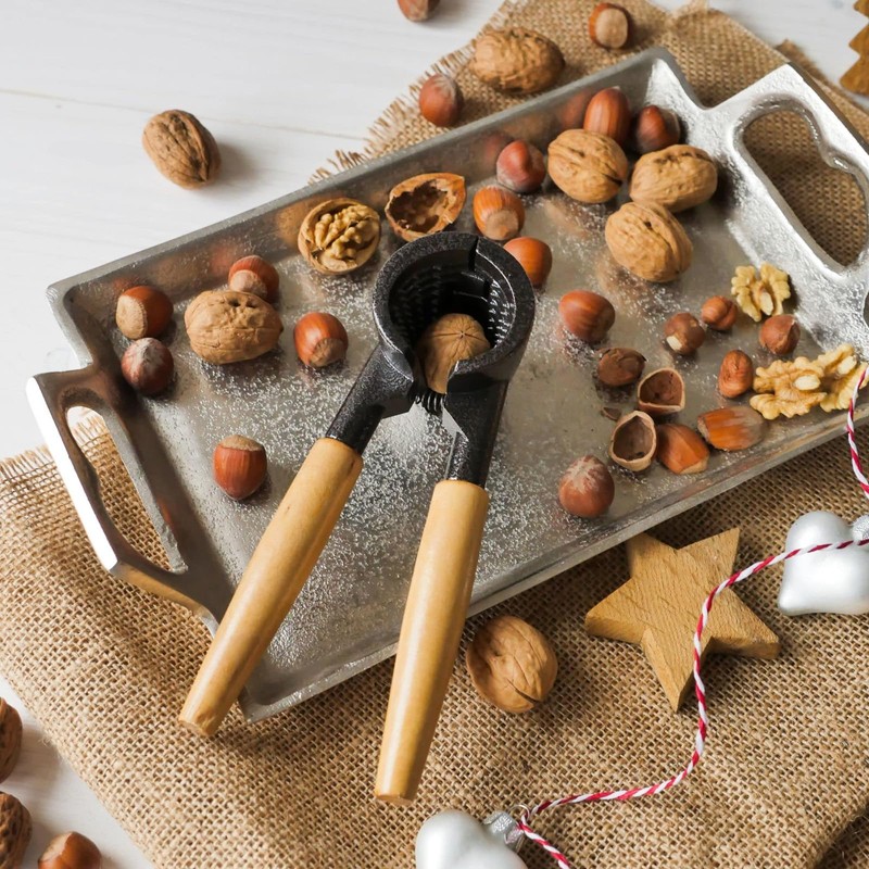 - DURABLE CONSTRUCTION Crafted from high quality stainless steel with an ergonomic wooden handle, the nutcracker provides durable and comfortable use.