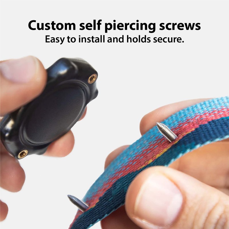 - Doesn't dangle: Our original thru-collar design uses self-piercing screws to go through any collar up to 0.20"/5mm (Which is 99% of collars. Some leather collars are too thick). Recommended for pets over about 10 lbs. Patents pending.