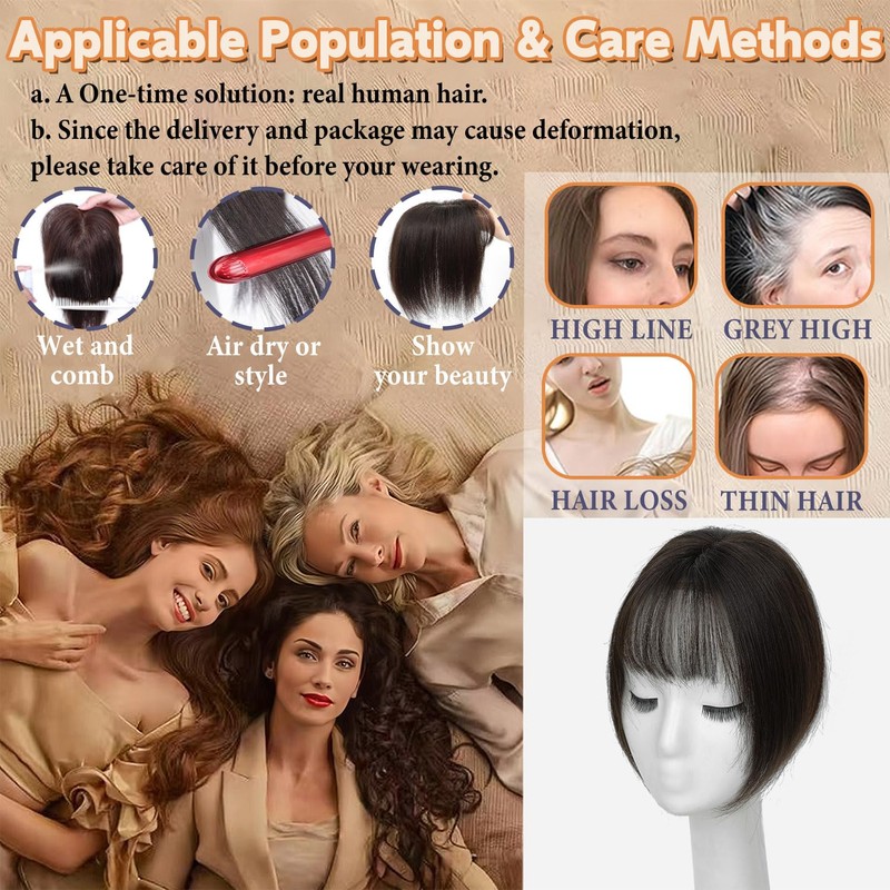 - Easy to Use: Quick wearing, save time. This hair toppers for women with thinnin hair has 3 anti-slip clips to make it stable and firm to wear and add instant fullness to your head. Hair topper with bangs hair clip will boost your confidence instantly