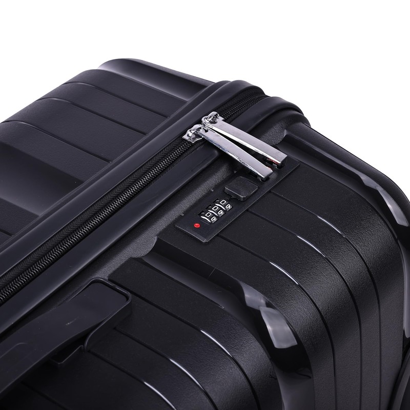 - Product Details: Our suitcase is made with a polypropylene material designed to make it durable and lightweight. Item comes with a TSA lock for peace of mind while traveling. The main compartment comes with mesh median strips and cross bands to hold your items in place. This item comes with your choice of two colors: Blue or Black.