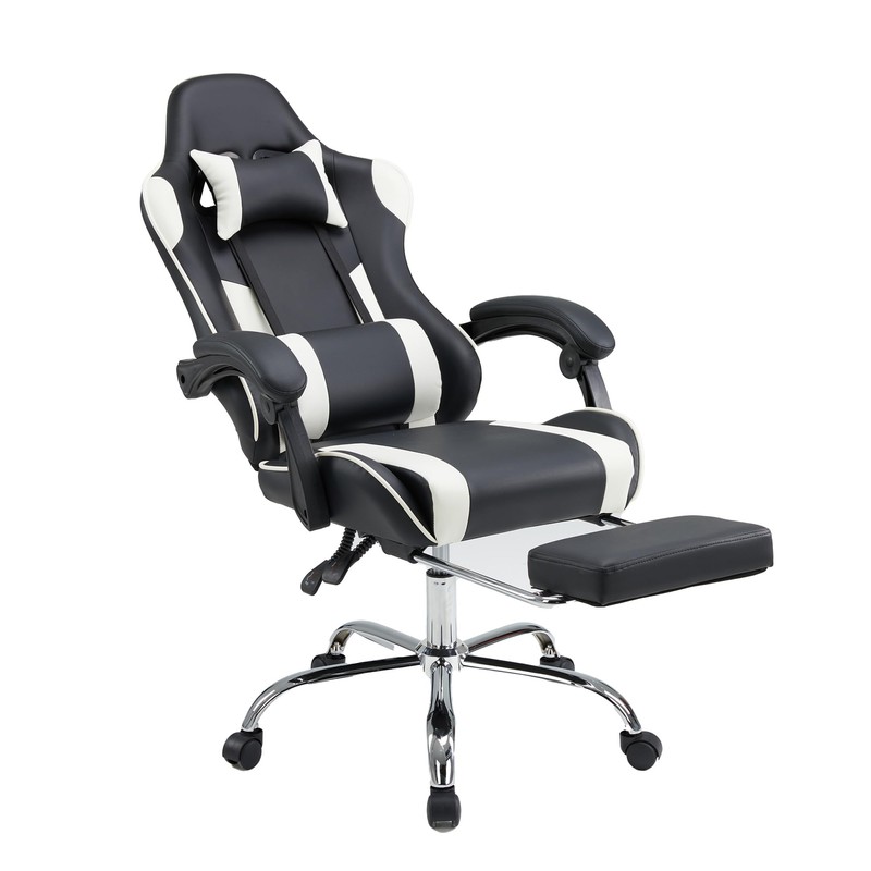 Elevon Ergonomic Video Game Computer Chairs with Footrest & Comfortable Lumbar Support,Height Adjustable Reclining Chair in PU Leather with Headrest and Fixed Armrests, 360° Swivel, Black&White