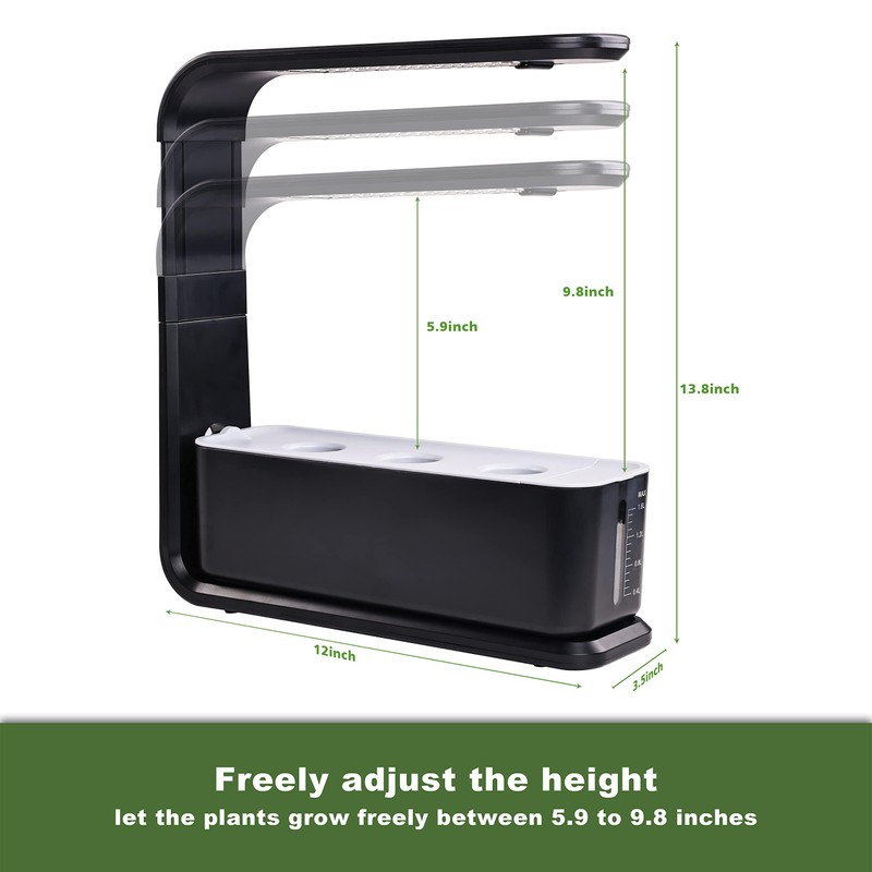 - 【Plant to Plate】You can plant up to 3 plants at a time, and the maximum height can be adjusted to 13.8 inches. At the same time, the plant lamp will intelligently remind you to add water in case of water shortage, which can make it easier and easier for you to complete the planting.