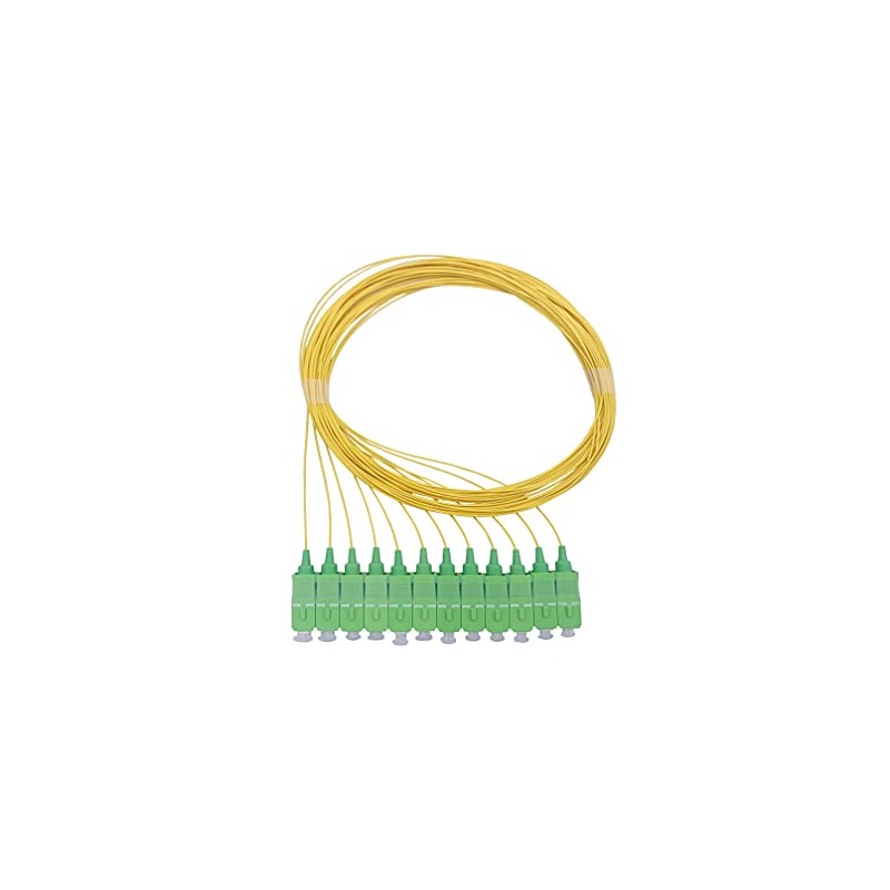 • Fibre Optic Pigtail Set Single Mode OS2 with SC/APC Connector, Consists of 12 Individual Fibre Optic Pigtails, Yellow.
