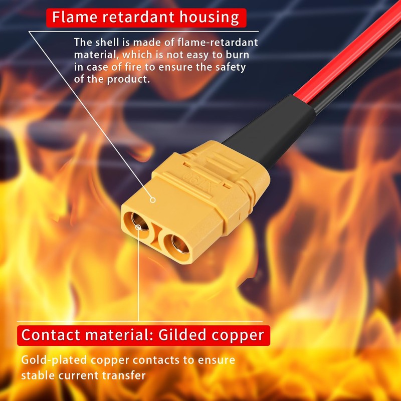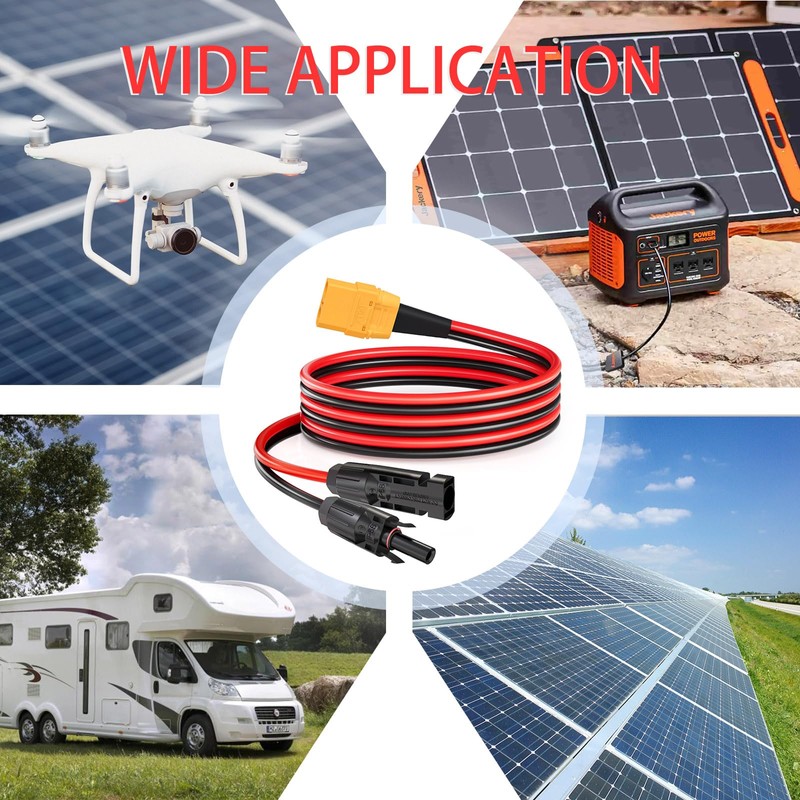 - [Solar Panel Cable] This XT90 to Solar Panel Connector Cable use 10AWG Tinned Copper UL2468 Certified Wire with high quality PVC nylon material. Tinned Pure Copper has low resistance, antioxidant, anti-corrosion and good electrical conductivity, providing stable current for your device