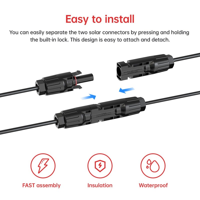 - [Waterproof] Solar connectors have waterproof rings to ensure that male and female connectors can be connected tightly and prevent water or dust from entering the connectors