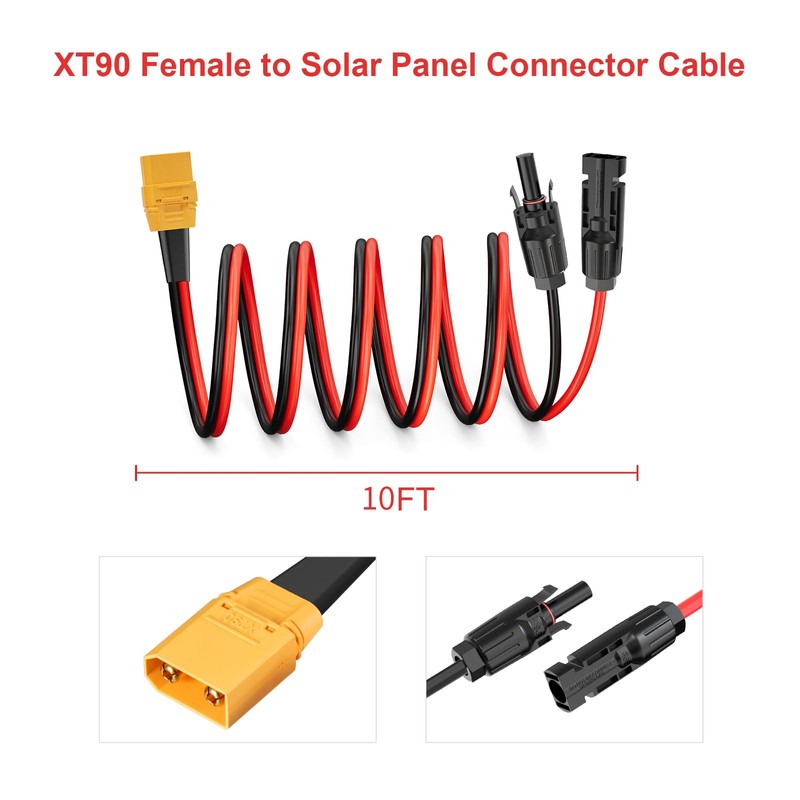 - [You Will Get] ELFCULB 10AWG 10FT Solar to XT90 Female Adapter Cable & 24 months friendly customer servic. Please contact us if you have any issue, we will reply and solve within 24 hours. (Note: Before Using Please Make Sure the Positive and Negative Poles are Correctly Matched)