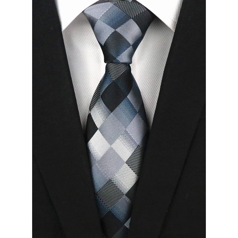 Elfeves Men's Classic Designer Plaid Ties Checks Patchwork Necktie Black Grey