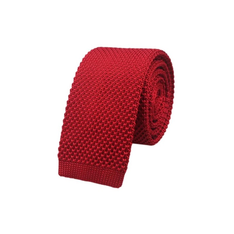 Elfeves Men's Skinny Knit Neckties for Men 2.2" Flat-end Smart Sock Ties Claret Red for Groomsmen