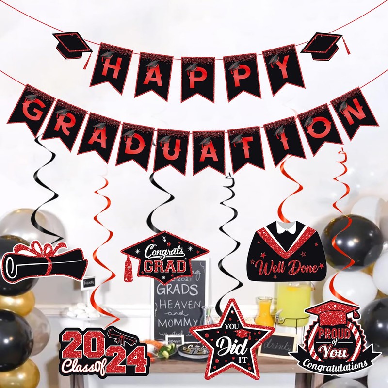 • What you will get: There are 1 piece of HAPPY GRADUATION banner, with 6PCS Swirl Hanging. which can set the theme of the party and set off a happy graduation season.