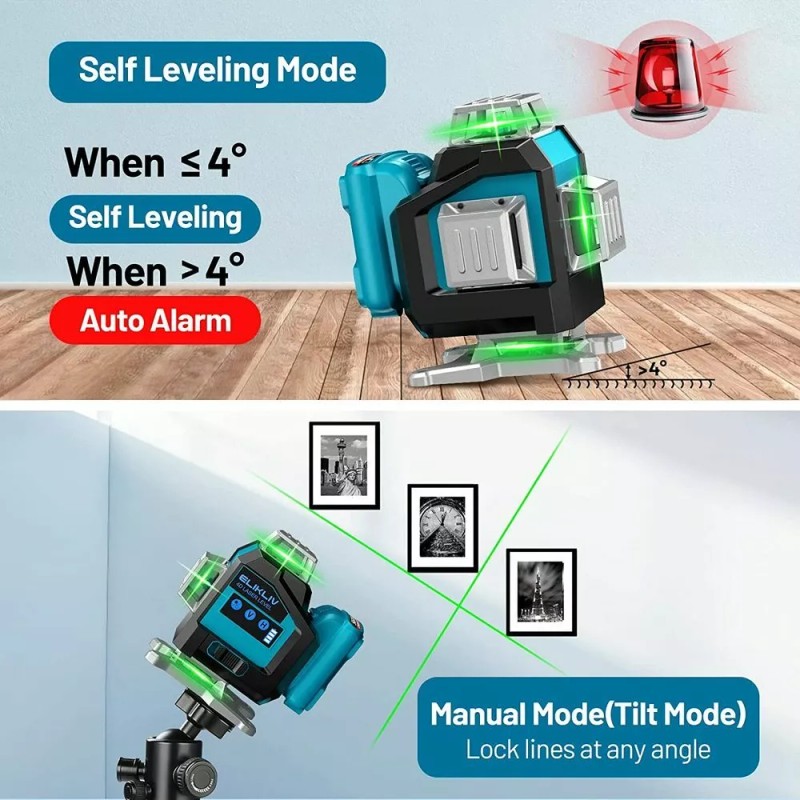 【SELF-LEVELING & MANUAL/TILT MODE】: ❶Laser level can be tilted self-leveling within ±4°,when the device is out of level and the lines will flash and beeps. ❷Manual/Tilt Mode:You can set angled lines.Perfect for installing lighting fixtures, hanging pictures or build the slope,etc.❸Wireless Remote Control.If you are working in a very large space with few hands to help, this could prove useful.