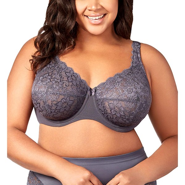 Elila Isabella Lace Full Coverage Bra 38G, Grey