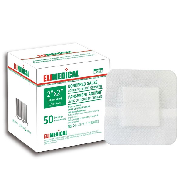 Elimedical Bordered Gauze Dressing Pad, sterile, 2"x2" Individually wrapped 50/box BG22