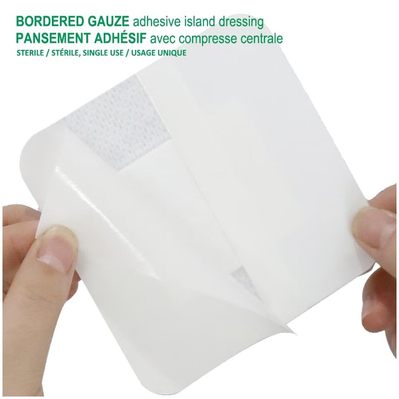 - Sterile, individually wrapped gauze dressing pad with border. 50 per box.