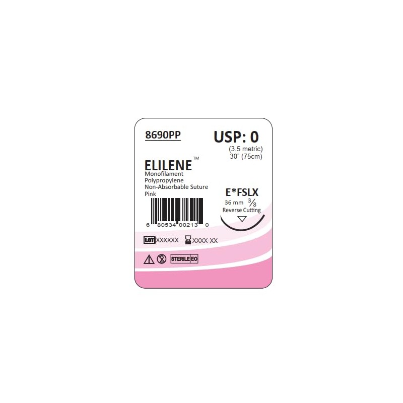 Elimedical ELILENE Suture with Reverse Cutting Needle, 12 Pack. Surgical Wound Training Students, Practice and Educational Use. Polypropylene Non-Absorbable Material 0 FF, 30”, FSLX, Pink 8690PP
