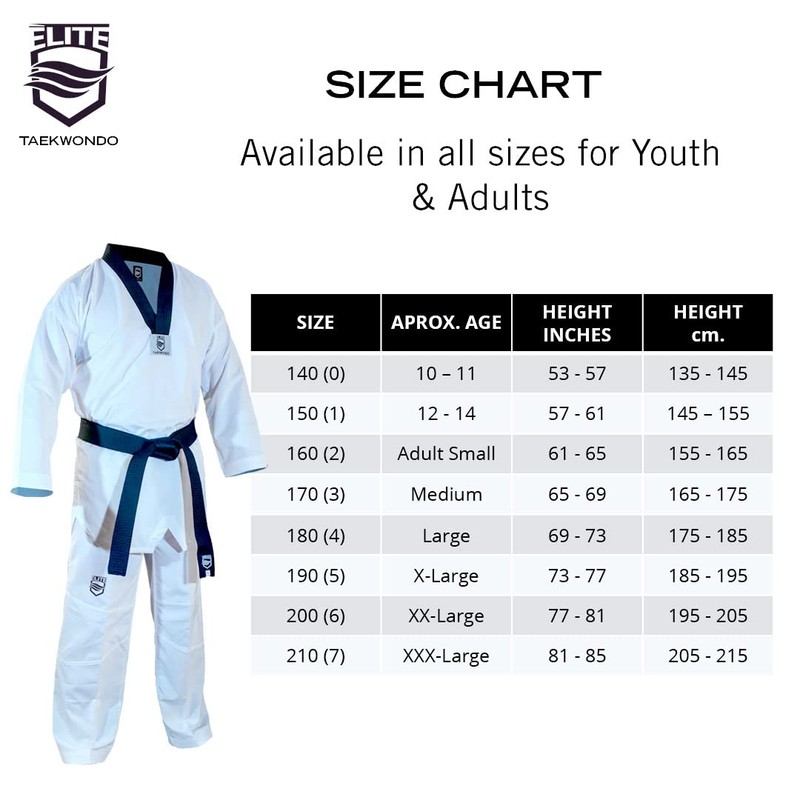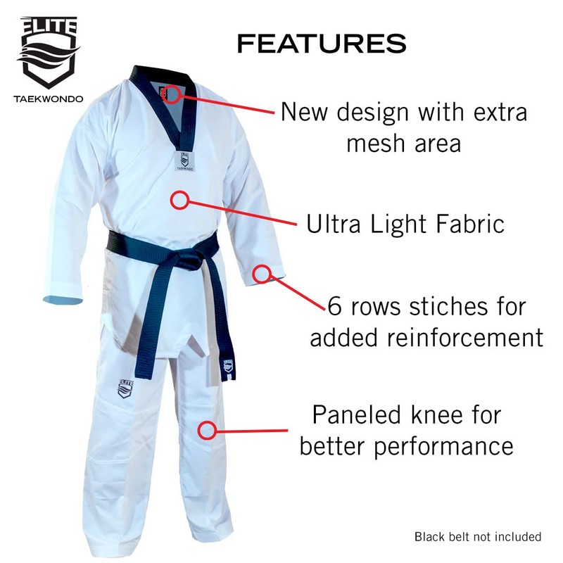 ELITE - Black Collar Taekwondo Uniform (TKD Dobok) Ultralight Fabric Fighting gear with extra mesh (200 (6))