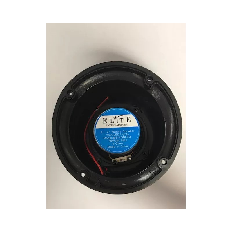 - Blue LED light in center of speaker