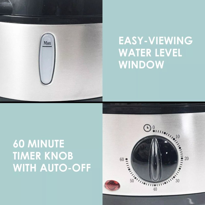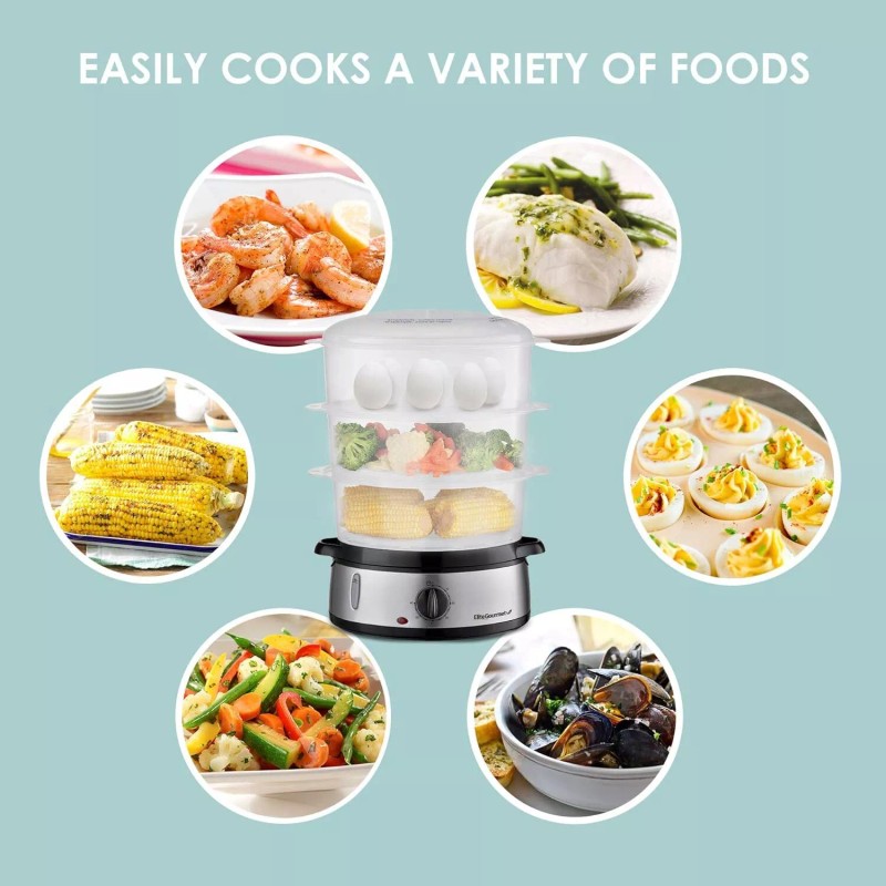 Elite Gourmet Electric Food Vegetable Steamer w/ BPA-Free 3 Tier Stackable Ne...