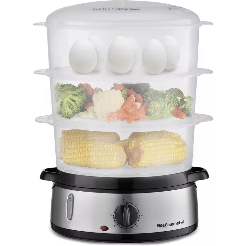 Elite Gourmet Electric Food Vegetable Steamer w/ BPA-Free 3 Tier Stackable Nested Basket Trays