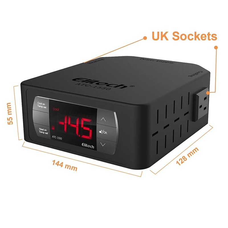 Elitech Pre-Wired Temperature Controller Thermostat 220V W/2 UK Sockets ATC-1550 Automatic Cooling Heating