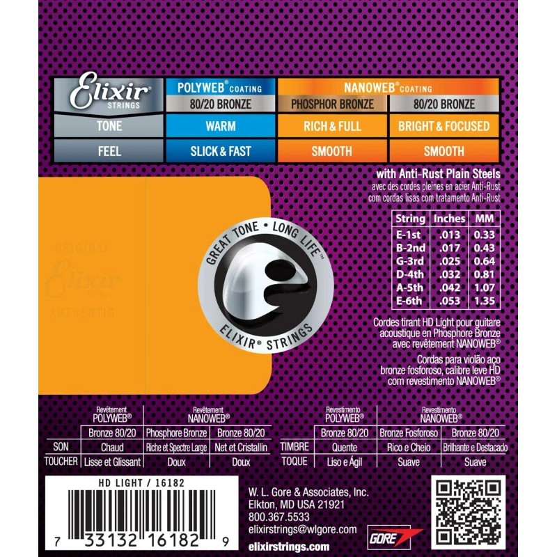 Elixir 16182 Nanoweb Phosphor Bronze Acoustic Guitar Strings .013-.053 HD Light