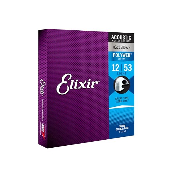 - CONTENTS: 1x Single Pack of Elixir Acoustic Guitar Strings, 80/20 Bronze with POLYWEB Coating, Longest-Lasting Warm Tone with Comfortable Feel, 6 String Set, Light 12-16-24-32-42-53