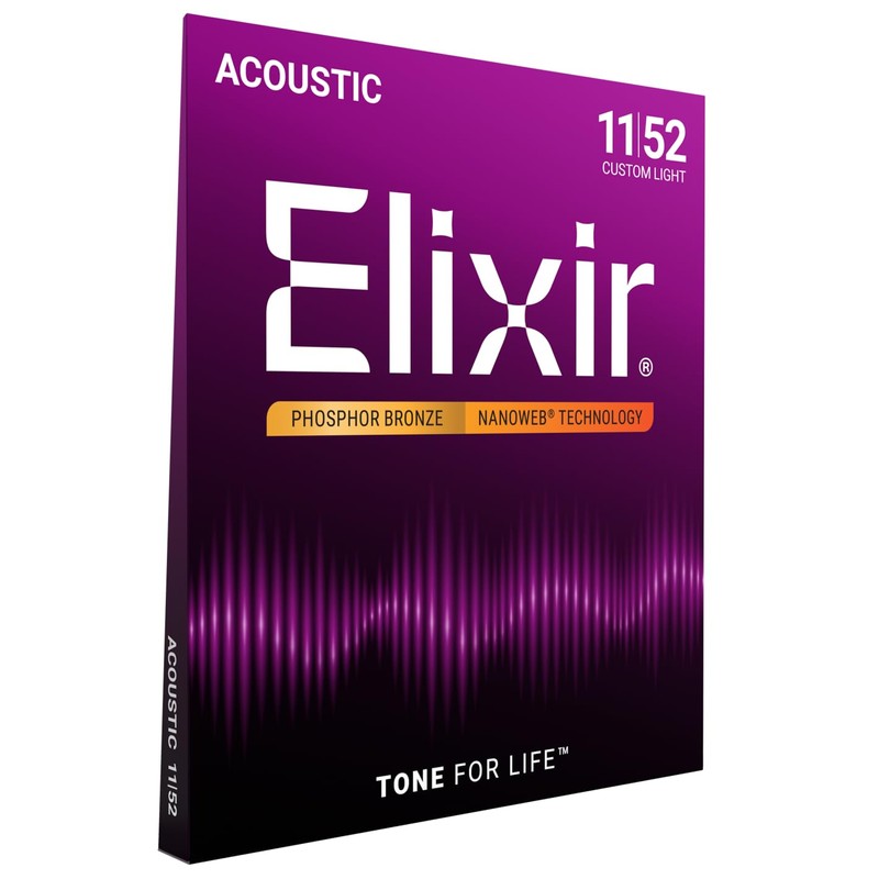 - CONTENTS: 1x Single Pack of Elixir Acoustic Guitar Strings, Phosphor Bronze with NANOWEB Coating, Longest-Lasting Rich and Full Tone with Comfortable Feel, 6 String Set, Custom Light 11-15-22-32-42-52