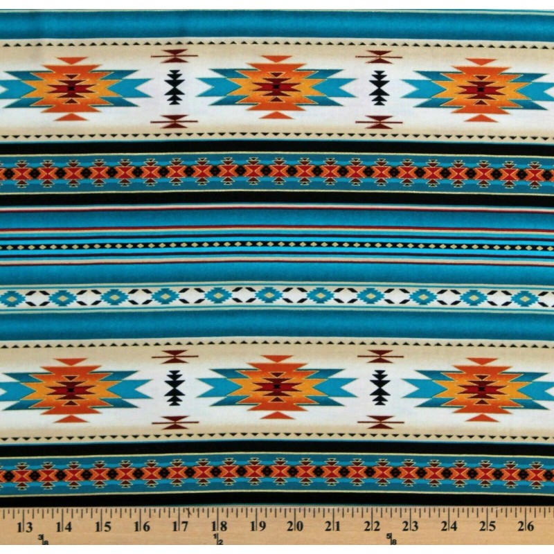 Elizabeth Studios Cotton Southwest Tucson Metallic Aztec Turquoise Fabric Print by Yard D462.54