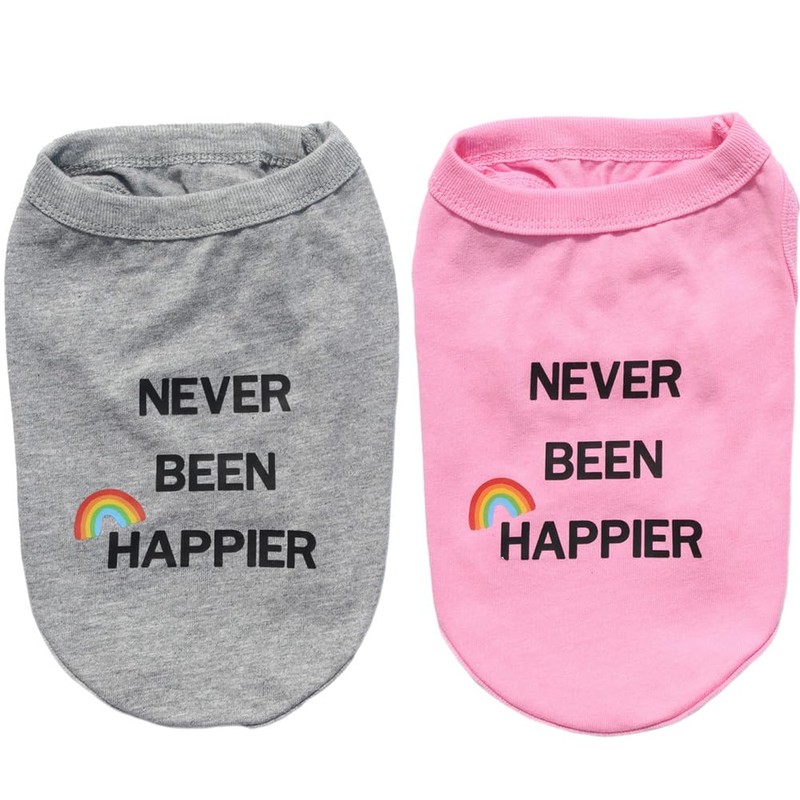 Elledia Dog Summer Sleeveless Clothes, Never Been Happier Print Costume for Small Dogs Cats Kittens Teacup, Pet Breathable Apparel for Indoor Outdoor Running Jogging Photo Shoots