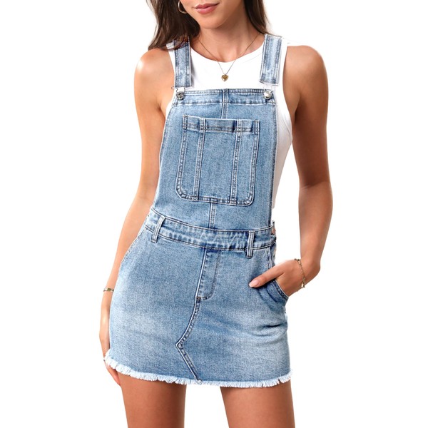 ELLEVEN Denim Overalls Dress for Women Mini Cute Jean Overall Dresses Womens Jumpers and Rompers Summer Denim Jumpsuit Light Blue X-Small